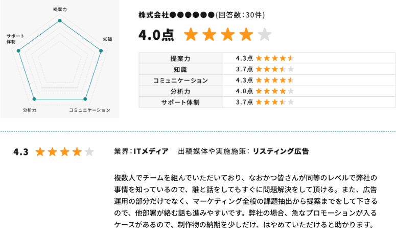 | キャンペーン内容 | 広告代理店のレビューを投稿しよう! ・レビューが掲載されると、Amazonギフト券5,000円分をプレゼント!(先着50名) ※レビュー投稿時にはキャンペーンコード【Yv2XLtSn】を必ずご記入ください。 ※キャンペーンコードの入力がないレビューは、「本キャンペーン」の対象外となります。 ※その場合、送付されるギフト券は2,000円分となりますので、あらかじめご了承ください。 |